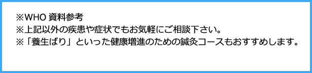 鍼灸の効用もWHO(世界保健機構)でも認められています。