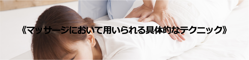 これらの手技を用いて身体に力学的刺激を与え、コリを揉み解したり、